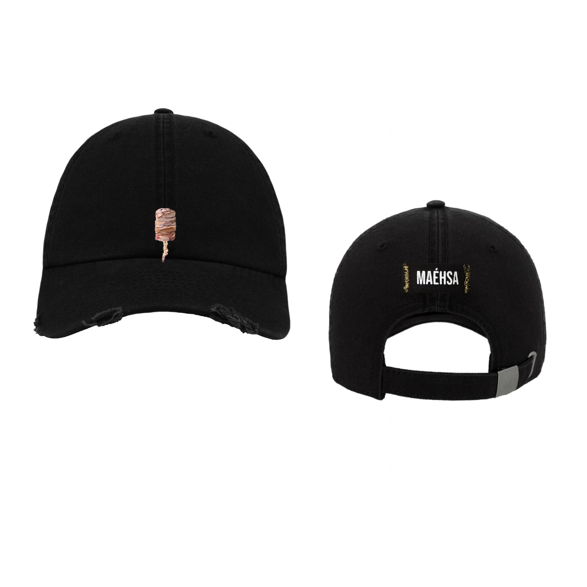 Une casquette 100 % coton, brodée à la main dans notre atelier parisien, ornée d'un tissu 100 % soie inspiré de la nature, brodé sur le devant. L'étiquette MAÉHSA est cousue au dos, avec des coutures effet destroy en vert kaki.