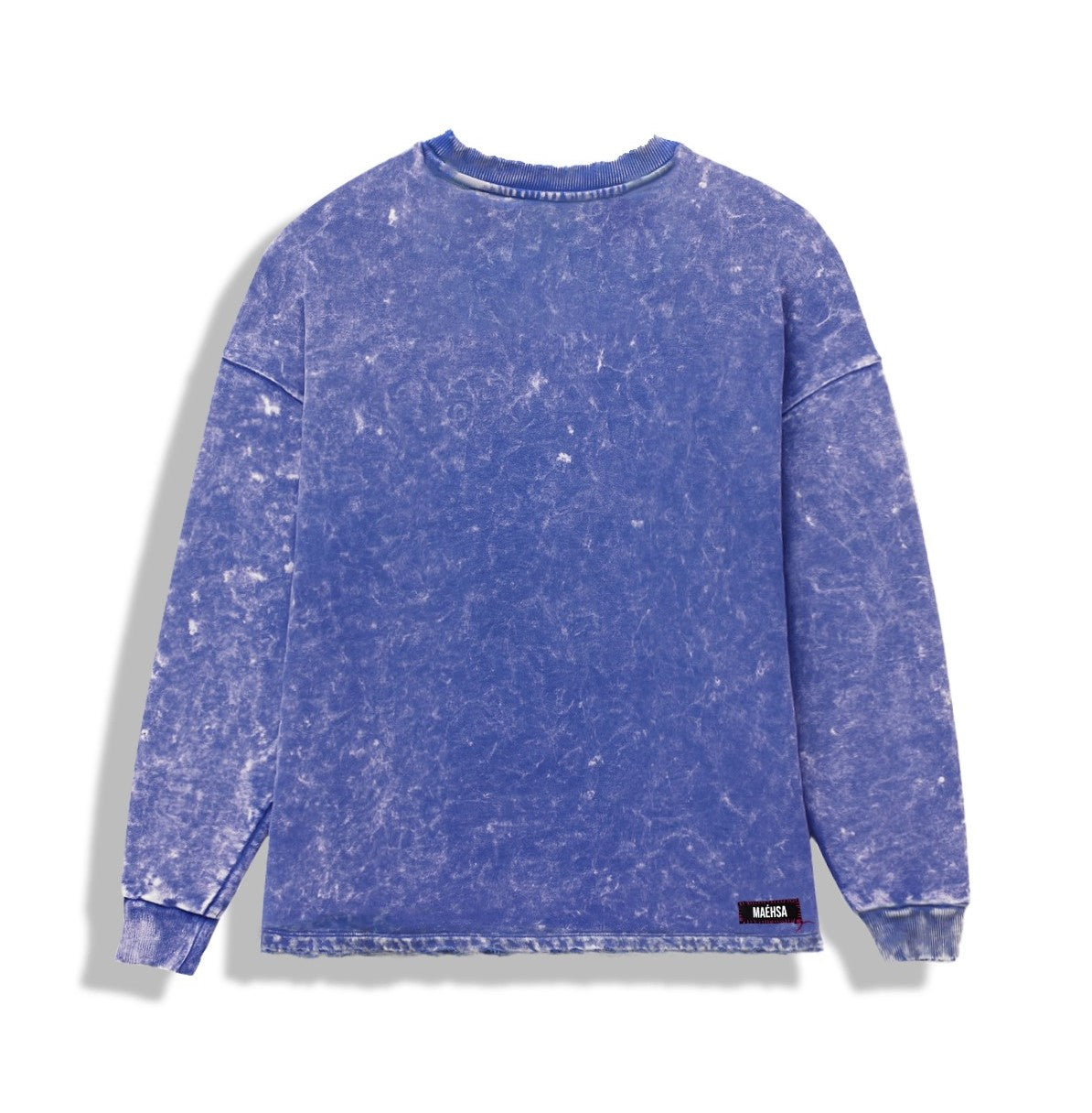 L'étiquette MAÉHSA, brodée elle aussi en fil framboise au bas du dos, vient signer la pièce, clin d’œil subtil à notre univers.
